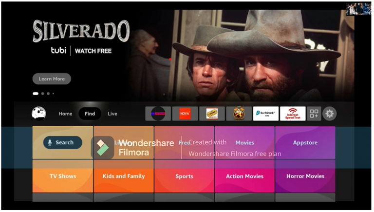 1) From the main menu on your Android TV or Fire TV, go to the ‘Search’ section and click on the ‘Search’ tile to proceed.