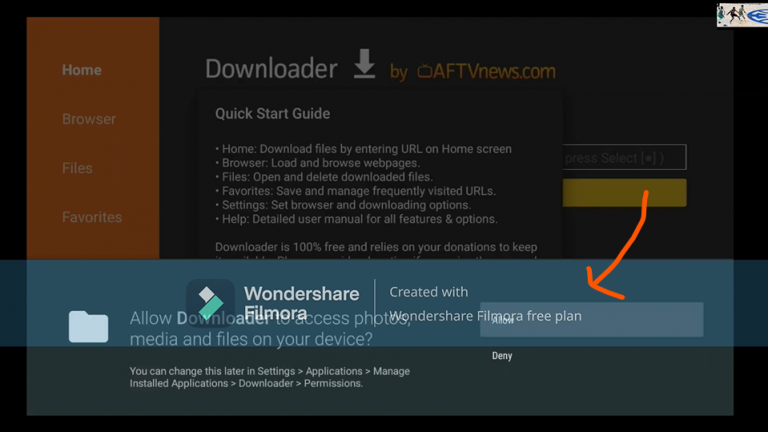 6) When you start the app for the first time, you must grant the downloader access to your file system. Select the option “Allow”.